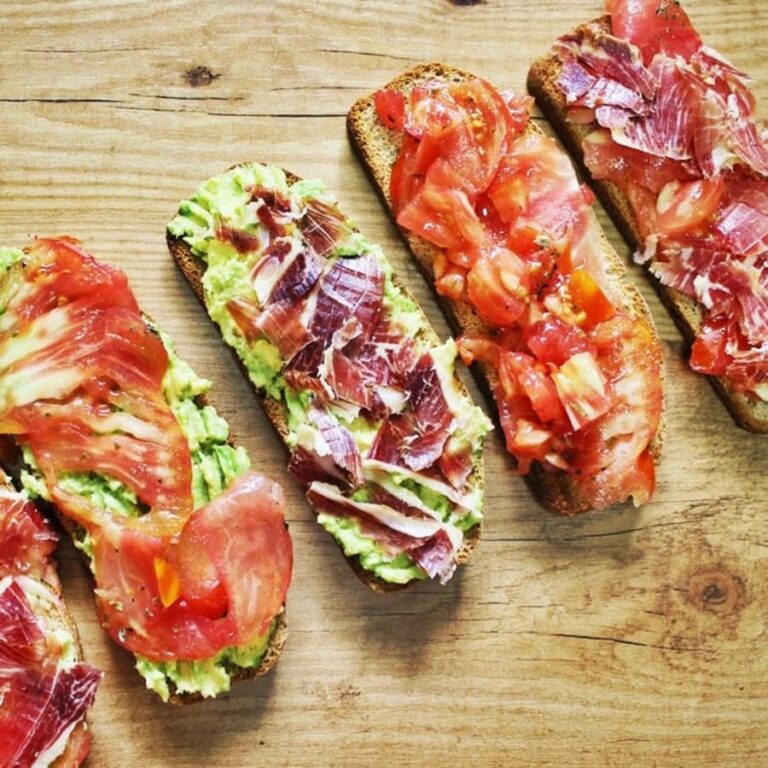 Tostas de jamón con aguacate y tomate